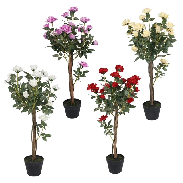 PZ-3-150 Customized Plastic Bonsai Flower Camellia Green Plant Artificial Rose Tree With Pot for Home Decor